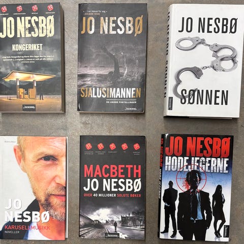 Samling av romaner skrevet av Jo Nesbø, inkludert titler som Sønnen, Rødstrupe, Gjenferd og andre. Bøkene er på norsk og passer for lesere som er interessert i krim og spenningslitteratur.. har også Harlan Coben, Jørn Lier Horst, Hans Olav Lahlum, Karl Ove Knausgård. Tilsammen 22 uleste bøker. Eneste leste er jønke mitt liv, jo Nesbø Sorgenfri og Stephen King. Kom m bud