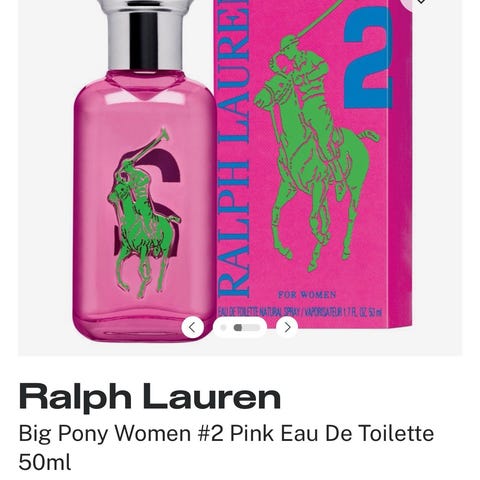 Ralph Lauren Big Pony Women #2 Eau de Toilette er en duft for kvinner med en kombinasjon av tranebær og tobakknote, beriket med liljekonvall. Flasken inneholder 100 ml rosa væske. Duftens toppnoter inkluderer tranebær-akkord, hjertenoter av sandeltre og tobakknote, og base av vanilje og musk. Produktet leveres i original emballasje.