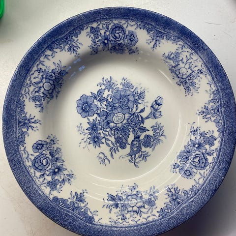 Delvis servise fra Royal Wessex, Made in England. Klassisk blått/hvitt mønster. Tåler oppvaskmaskin og mikrobølgeovn.