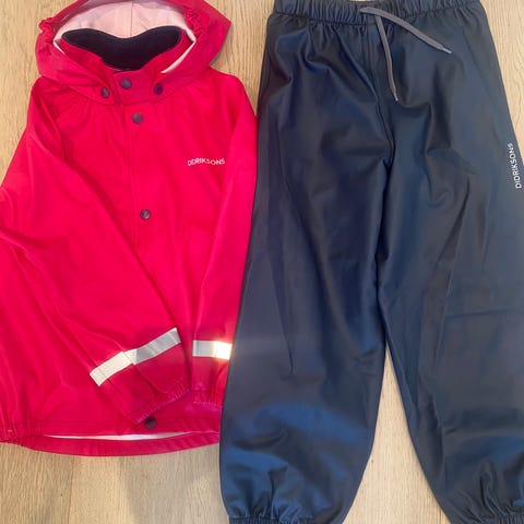 Regnsett synlig brukt med et lite skade bak høyre armen men ellers helt fint