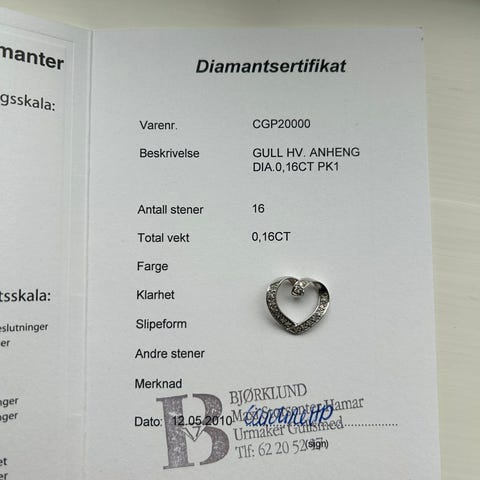 Hjerteanheng i hvitt og gult gull