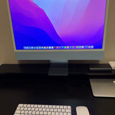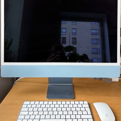 Selger strøken iMac 24” (2021) lyseblå, med Apple M1-prosessor.