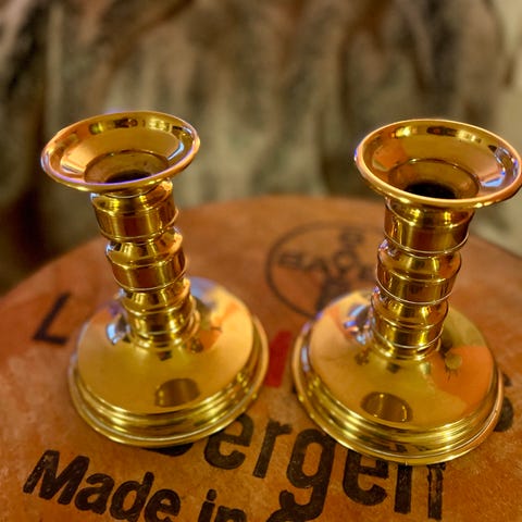 🕯️Vintage lysestaker i messing med blågronn finish (par)