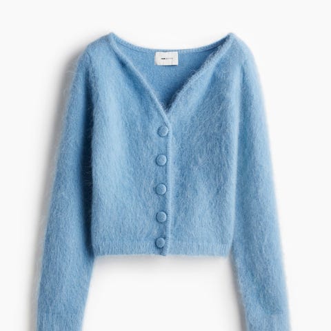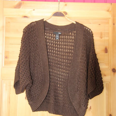 Lilla cardigan fra H&M i akryl og mohair i str M/L.