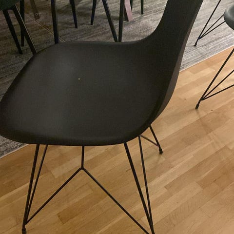 Én av stolene har lysere ben, da disse er beiset lysere enn de andre. Dette er kun en visuell forskjell og påvirker ikke funksjon.