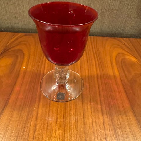 Vakkert glass med rød tulipan-dekor