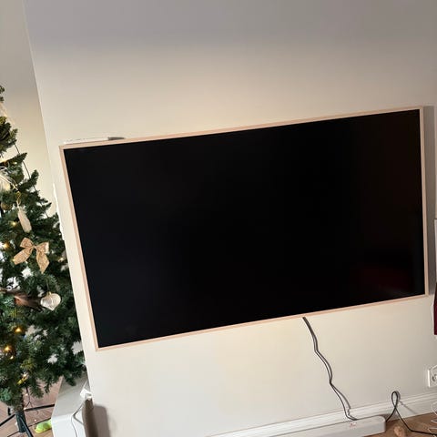 TV-en ble kjøpt til leiligheten vår, men først etter oppussing og innflytting viste den seg å være litt for stor for stua. Esken er aldri åpnet, og TV-en er dermed helt ubrukt.