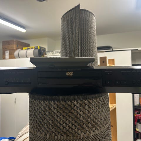 Panasonic DVD-spiller/opptaker med standard tilkoblinger for lyd og bilde. Enheten har et metallhus og er designet for hjemmeunderholdning.