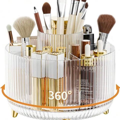 Organisatoren har flere rom som gjør det enkelt å sortere sminkekoster, leppestifter, kremer, parfyme, neglelakk eller skrivesaker. Den roterer lett slik at du alltid har rask tilgang til det du trenger.