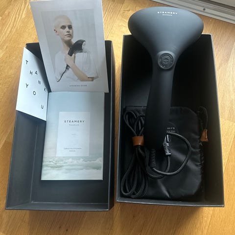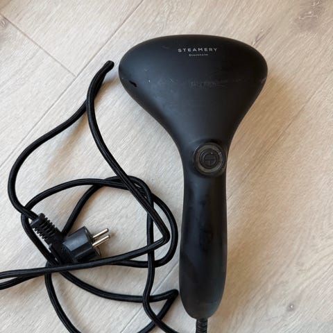 Steamery Stockholm håndholdt tekstilsteamer. Brukes for effektiv steaming av klær og tekstiler. Enheten har enkel knappkontroll og ledning for strømtilkobling. Fungerer helt fint, men selges da den ikke brukes.