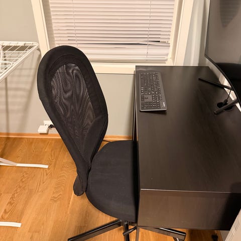 IKEA kontor stoler med hjul, rosa og sort farge. Stolene har perforert sete og rygg, og er designet for barn+ungdom . Justerbar høyde og stabil base med fem hjul for enkel bevegelse.
