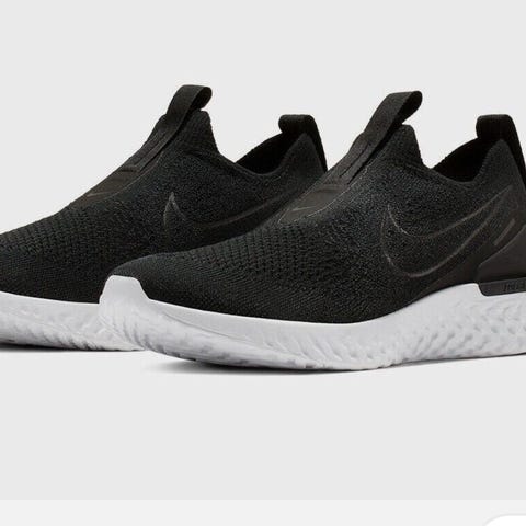 Nike sneakers i størrelse 45 med blå og svart farge. Skoene er designet som joggesko og har en høy ankelprofil. Materialet og andre spesifikasjoner er ikke oppgitt.