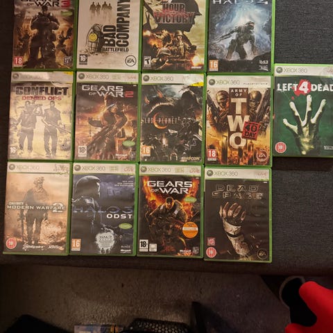 Microsoft Xbox 360 spillkonsoll med kontroller og spill