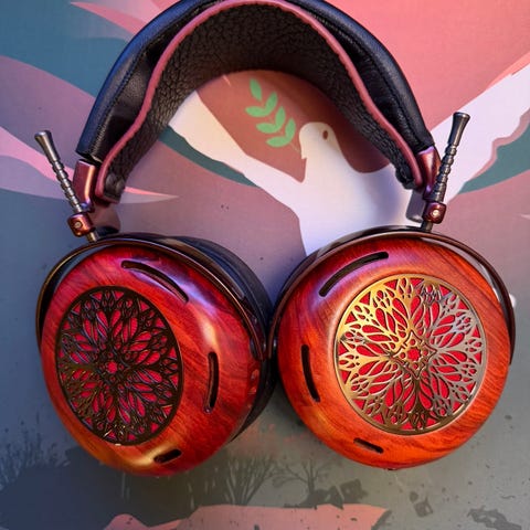 ZMF Atrium Closed A-stock i sjeldent Koa-treverk (5,000 kr ekstra for treslaget alene). Eneste Atrium Closed A-stock i Koa (de to andre er B-stock B218, og B223). Hodetelefonene har svart magnesium chassis og coffee B.B.B. strap. Kjøpt desember 2024 som del av ZMF November drop'en (levert mars 2025) og fremstår som nye.