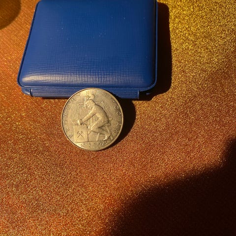 Norsk 1 krone mynt fra 1940 med hull i midten. Mynten har en diameter på ca. 21 mm og er laget av metall.