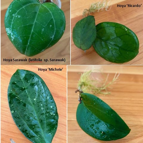 HOYA PAKKE - rotet: H. sp Germany, H. 'Michele', latifolia 'Pot of Gold', H....
