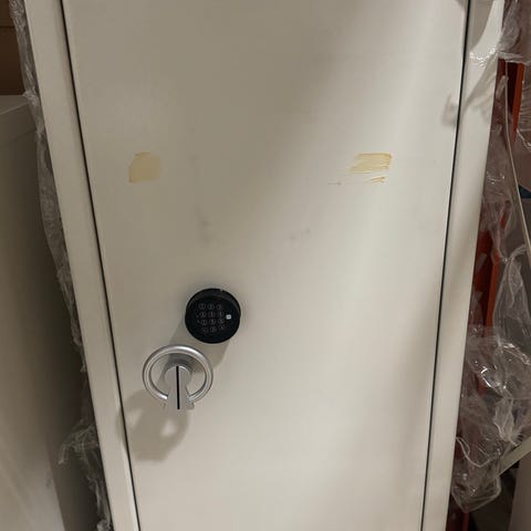 FG godkjent sikkerhetsskap med elektronisk kodelås. Nå er det innmat med hyller og uttrekkbare nøkkel plater, disse kan demonteres å man kan bruke den siden til andre ting, våpen etc 190x75x48 ca 340 pga innmat. Kan leveres etter avtale