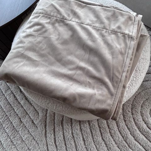 Gardinene er sydd opp til 210, men er ikke klippet, så de kan legges ned til 220. Ble kjøpt nye for 3 mnd siden for 879 per lengde.