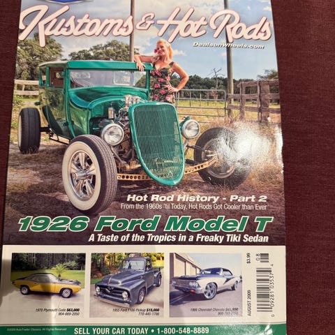 Dette er et autentisk programblad fra hot rod-arrangement, med klassisk 80-talls illustrert forside og innhold relatert til hot rod-, custom- og amerikansk bilkultur.