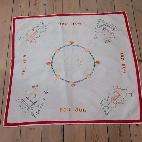 Vevd, lang bordløper fra franske Art de Lys. Løperen er hele 172 cm lang og bredden er 34 cm. I tillegg kommer dusk i hver ende - de er 11 cm lange (hver). En virkelig prakt-løper, vevet a vArt de Lys. De holder til nord i Frankrike og holder på den tradisjonelle jacquard-vevingen. Svært høy kvalitet.