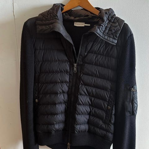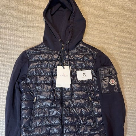 Moncler Maglia C/Cappuccio Cardigan, selger denne super fine og strøkne Moncler Cardigan, Størrelse Small passer true to size, Kjøpt ny på CareOfCarl og har kvittering og orginal kleshenger, svært skjeldent syn å se, black logo modell med super komfertabel pels inni, Som avbildet er tilstanden tilnærmet størken og helt fin, fargen er mørkeblå, 700++ salgsreferanser så her handler du i trygge hender ser mye fakes av gå rundt av disse, sikre deg safe handel med god og trygg pris og selger, bevis på at den er ekte kan fremlegges om ønskelig, kan sendes, ta kontakt ved andre spørsmål