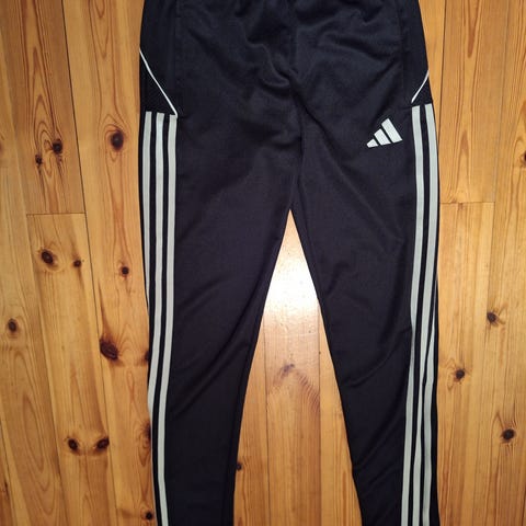 Adidas Primegreen joggebukse / treningsbukse for barn i størrelse 152. Joggebuksen er svart med hvite detaljer og har Aeroready-teknologi for fukttransport. Laget av resirkulerte materialer som en del av Primegreen-serien.