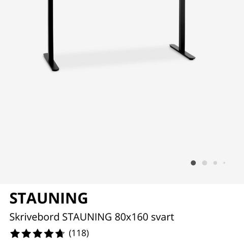 Elektrisk hev/senk-pult selges. Bordet er helt og pent, og fungerer som det skal. Bordplaten måler 160 × 80 cm, og høyden kan justeres elektrisk fra ca. 70 til 115 cm, noe som gjør den godt egnet både til sitting og stående arbeid.