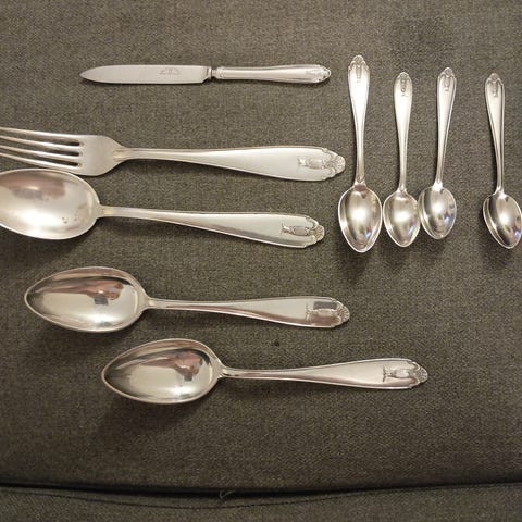 Tesil i nysølv fra epoken 1930-1960. Har bare pusset over med pusseklut, resten går fint med vanlig sølvpuss.
