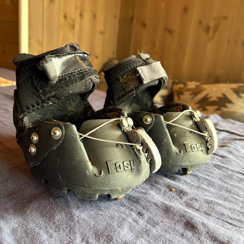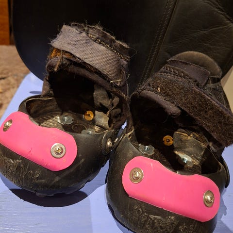 2 med brodder og 2 uten. De uten med slitte gaitere, men følger med 2 ekstra + 2 såler.