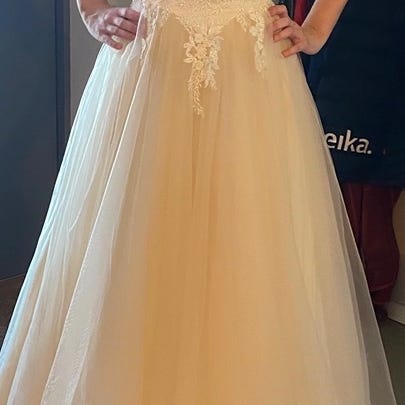 Nydelig ballkjole lys blå leies ut (XXS-S) Mira bell Alexandra Ritzi