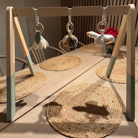 Denne søte babygymmen fra Done by Deer stimulerer ditt nyskjerrige barns læring og gjør det mulig å både leke, føle og titte på en gang. Lekene som følger med kan henges opp på 13 ulike måter i lekebøylene og har ulike funksjoner som holder den lille interessert. Lekebøylene festes enkelt med borrelås og lekene kan brukes separat, eller også henges i barnevognen.