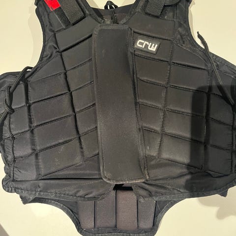 CRW beskyttelsesvest i svart farge. Vesten har polstret design for beskyttelse. Den har justerbare stropper på skuldrene og snøring i siden for tilpasning. Vesten er i str 8 år.