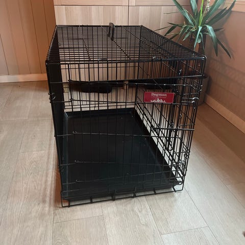 Robust hundebur som kan legges sammen. Utagbar plate i bunnen for lettere rengjøring. Åpning både på kortside og langside.