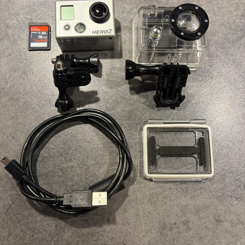 GoPro 7 White action camera. Used a couple of times, no scratches on the lens or display. Good battery, charging cable included. Case is locked to the snorkling handle. 32Gb SD card is included, so camera is ready for action.