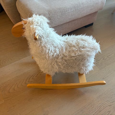 Gyngesau kjøpt på marked i Danmark, i bøk. Trekket kan tas av og vaskes. Ingen merker eller skader