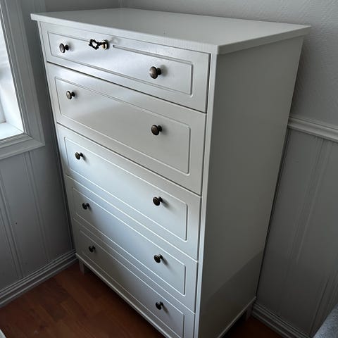 Kommode som passer ypperlig i ganger eller entreen. En del bruksmerker, men fortsatt mye bruk igjen. Speil kan følge med om ønskelig, se siste bilde.