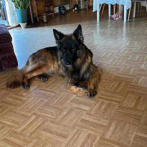 Det viktigste for oss er at hun får et godt og trygt hjem, hvor man har kunnskap om brukshundrase og er villig til å gi henne tid, omsorg og trening!