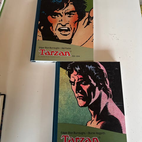 Tarzan bok fra 1938 og solan og ludvig bøker fra Flåklypa! Selges samlet!kan sendes! Ikke fiks ferdig!