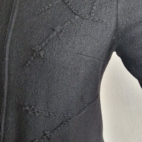 Veldig varm og i svært god stand. Tovet ullstoff og strikkede felt i sidene.
