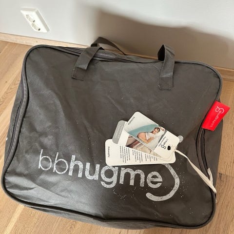 Fin, nesten ubrukt, gravidpute fra bbhugme. Farge: ecalyptus (lys blå). Kun brukt et par ganger under graviditeten. Kan brukes til å sove med, slappe av med eller til amming. Mange bruksområder. Trekket er vasket og kun ligget lagret i skapet etter det. Ingen skader eller merker. Kommer med tilhørende bag.