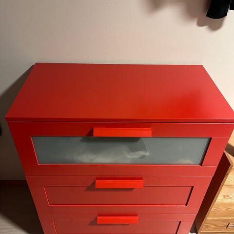 Kommoden er i fin tilstand, noe merker nederst høyre side - som vist på bilde