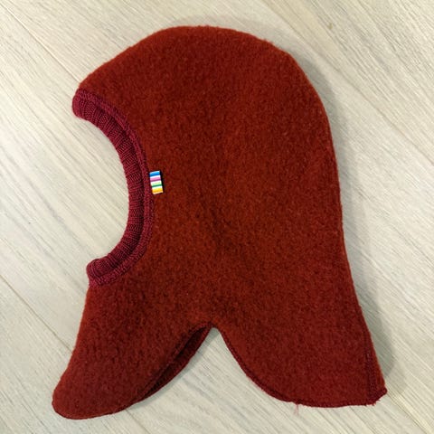 Joha balaclava for barn i størrelse 3-5 år. Laget av blå merinoull, egnet for både gutter og jenter.