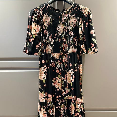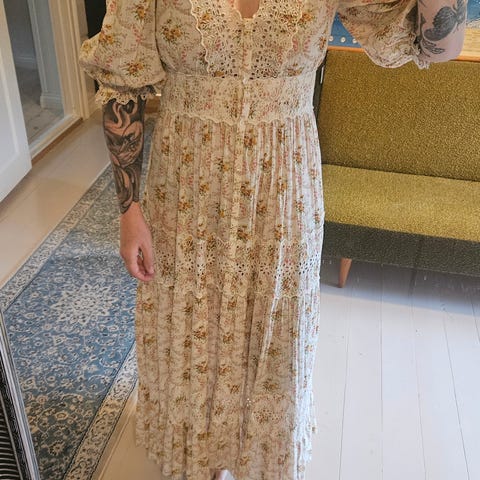 byTiMo Andre kjoler i flerfarget bomull, størrelse L for kvinner. Kjolen har detaljer som knapper og broderi, med lange ermer og elastisk midje. Materialet er bomull, og plagget passer til ulike anledninger. Kjolen har aldri vært brukt og fremstår derfor som ny! Pris er inkl frakt m Norgespakke m sporing! Bet m Vipps! Sender ikke m Fiksferdig!