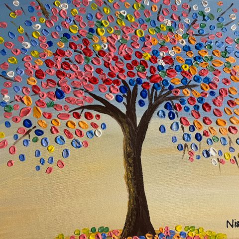 Abstrakt maleri med varme jordfarger som oransje, brunt og rødt. Maleriet har et geometrisk og lagdelt mønster som skaper dybde og bevegelse. Passer som dekorasjon i ulike rommiljøer.