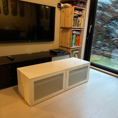 Ikea nyboda tvbenk/ bord. I metall, med vendbar bordplate.