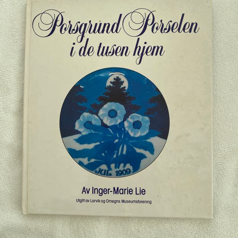 Porsgrund Porselen bok med tittelen "Porsgrund Porselen i de tusen hjem" skrevet av Inger-Marie Lie. Boken er i hardcover og inneholder informasjon om Porsgrund Porselen, inkludert historiske fakta og bilder av porselensprodukter.