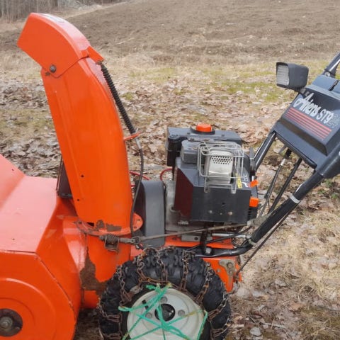 Ariens 824. Gammel årgang, starter lett, ny forgassser, nye reimer på driv og utkast. Kjetting følger også med.