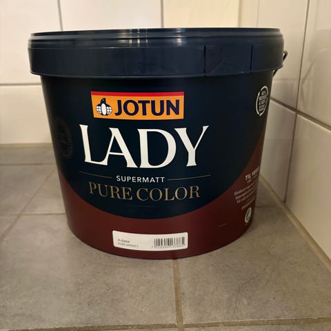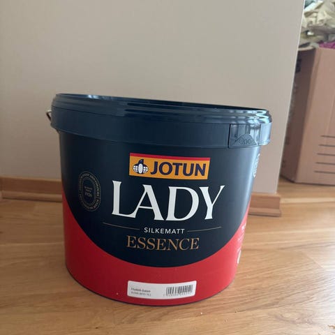 Jotun Lady Wonderwall veggmaling med matt finish. 3 x 2,7 L Earthy Yellow (fargekode 5853 / 2217-G98Y), 1 x 2,7 L Malmö (fargekode 8124 / S1010-G90Y), 1 x 2,7 L Antique Green (fargekode 7629 / 4708-G34Y), og 1 x 2,7 L Fresh Pasta (fargekode 1775 / S1015-Y). Alle uåpnet. 300 kr per spann