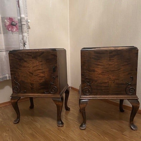 Nydelig lite skap / kommode / nattbord / bord kjøpt vintage selges da vi trenger mer oppbevaringsplass. Heltre og med fire skuffer som fungerer og passer til lagring av mindre ting. Nydelige detaljer og håndtak i messing (?).