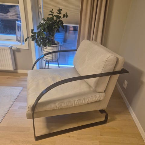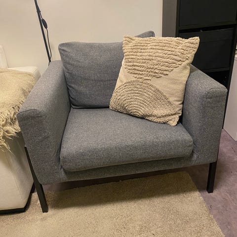 Grågrønn lenestol fra IKEA selges fordi vi har kjøpt ny. Trekket kan vaskes.